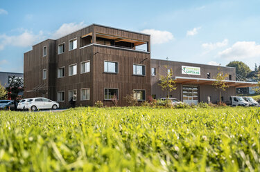 Genau so war es in Grosswangen, beim Referenzobjekt von Dubach Holzbau AG bei Stefan Marti Garten AG. Ein Neubau mit Werkhalle, eingebettet ins Grüne und perfekt in Szene gesetzt, sobald die Sonne durchkam.